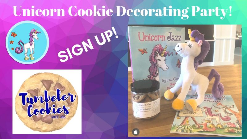 Unicorn Jazz & Tumbeler Cookies Unicorn Cookie Decorating Party! Get ready for this awesome back-to-school event! Sunday, September 29th from 1:00pm to 3:00pm with Unicorn Jazz and Tumbeler Lindenberger!!!! ABOUT: The children will then be given a complete unicorn cookie sheet with frosting, decoration and fixin’s to create and take home their very own custom Unicorn Jazz cookies. The cost of this